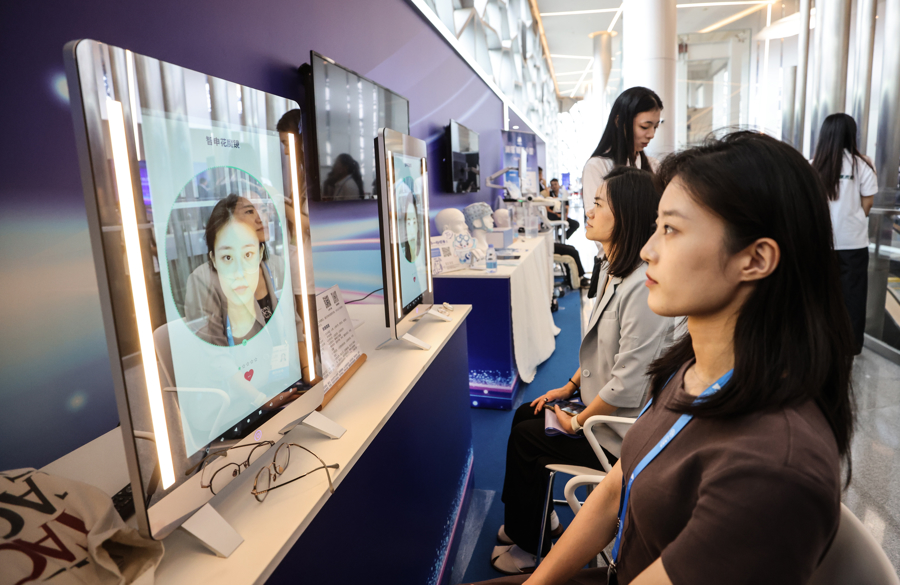 在2025浦江创新论坛“共享未来体验区”,上海人工智能研究院展示的“智申花魔镜”集成了血谱光学成像技术和人工智能算法,仅需30秒面部扫描,即可精准分析心率、血压、心血管状况等30余项健康指标,为用户提供便捷的健康状态评估。
