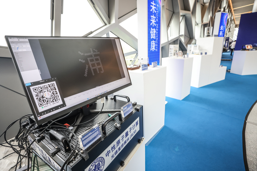 在2025浦江创新论坛“预见未来展示区”,复旦大学团队带来的中性原子量子计算光镊重排模块。