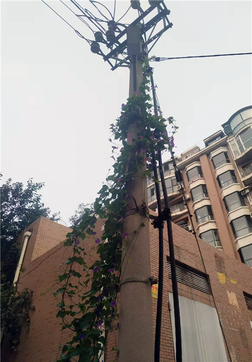 目前,中山区供电公司配电工作人员已将爬上电线杆的牵牛花藤蔓进行了清理。